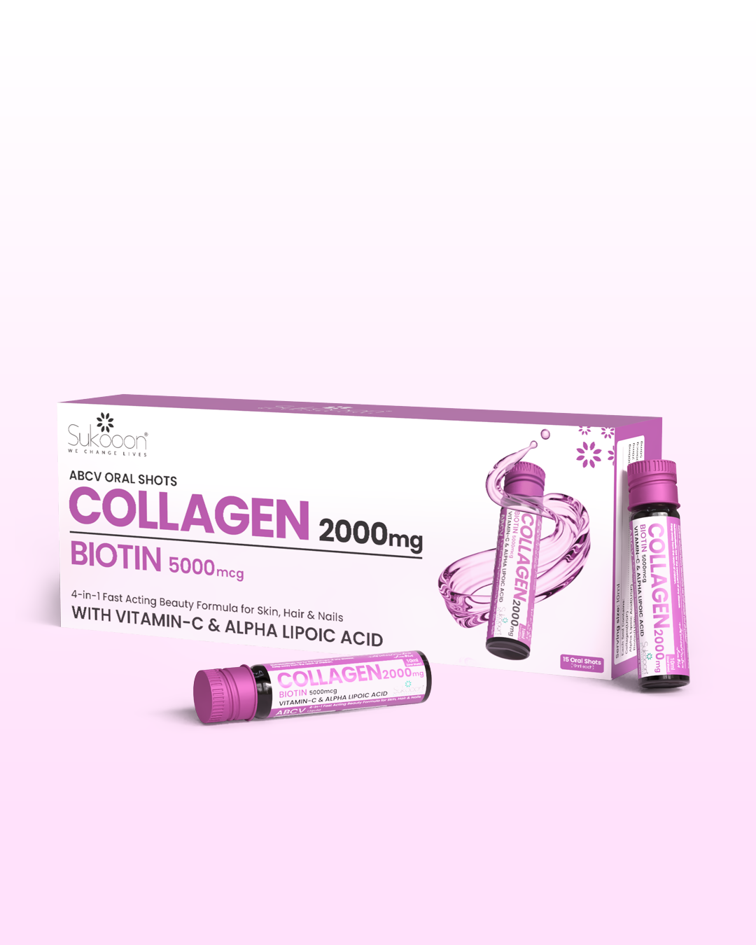 Sukooon’s ABCV Collagen Oral Shots are Pakistan’s first high-strength, fast-absorbing liquid beauty shot, created for modern lifestyles and quick routines.