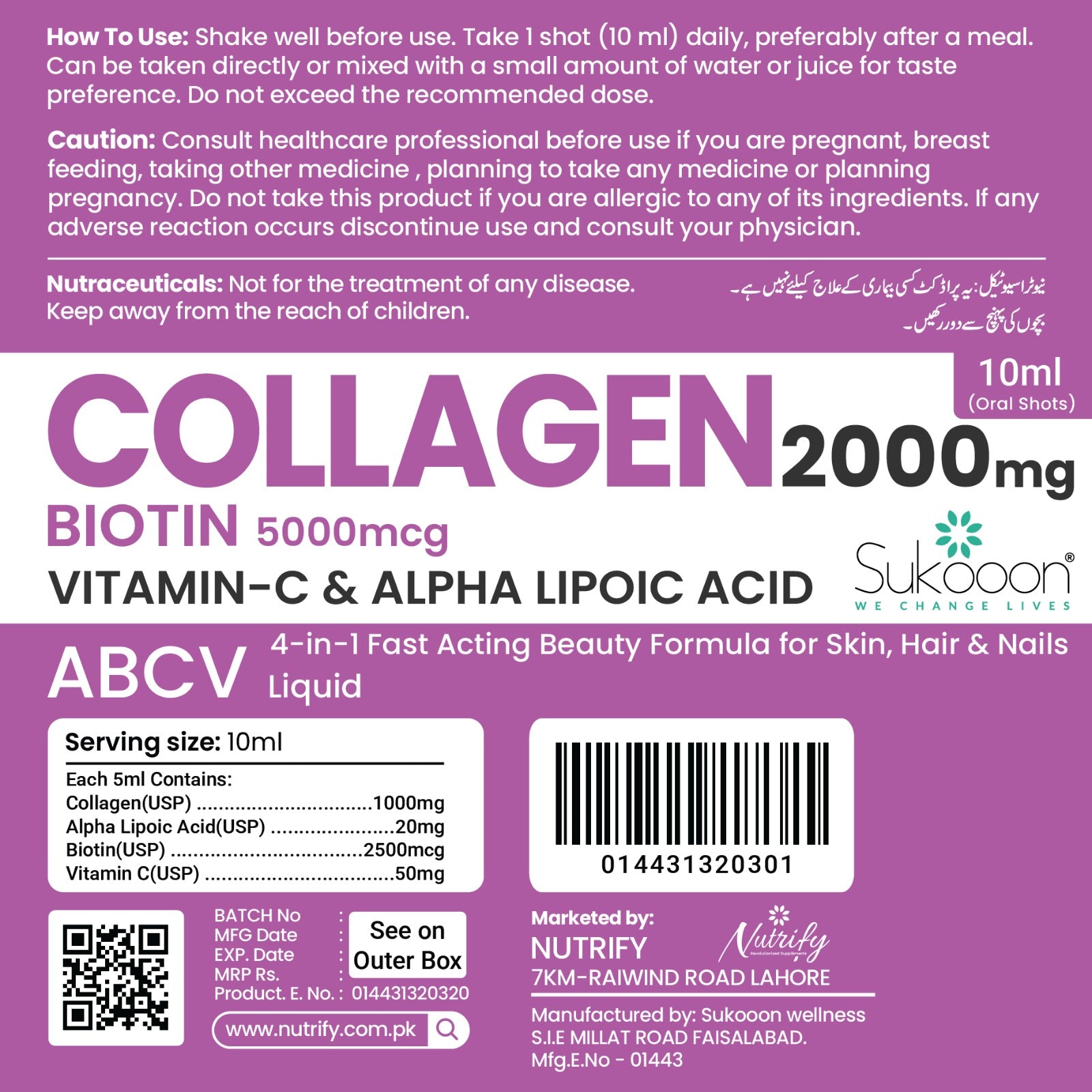 ABCV Collagen Oral Shots are available on the official Sukooon.com website and through selected retailers across Pakistan.