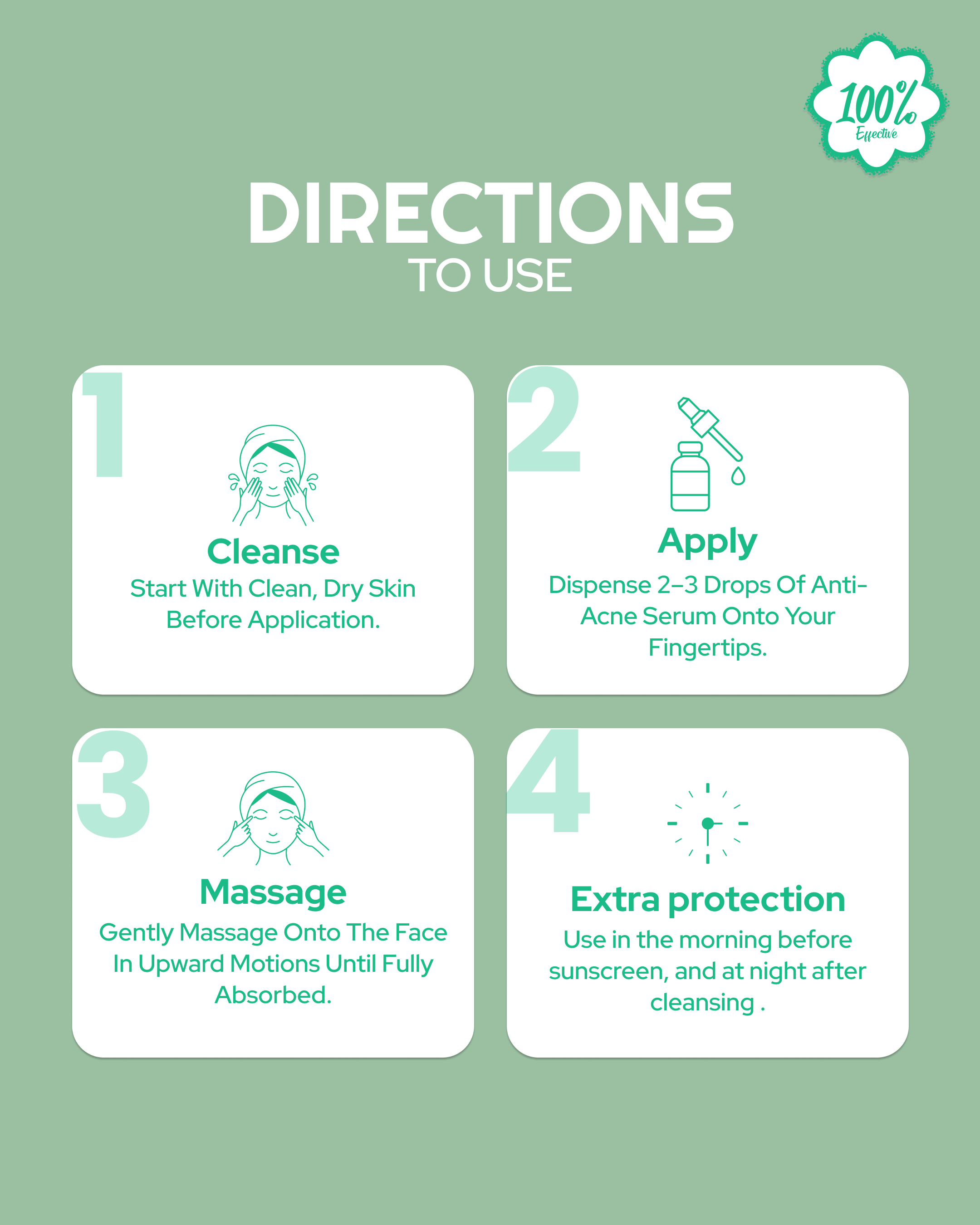 Formulated with Tea Tree Oil, Vitamin B3 (Niacinamide), Vitamin B5, and NaHA (Sodium Hyaluronate), this serum works to reduce inflammation, control oil production, and promote skin healing. Whether you’re dealing with occasional breakouts or persistent acne, this serum helps you achieve a smoother, clearer complexion with consistent use.