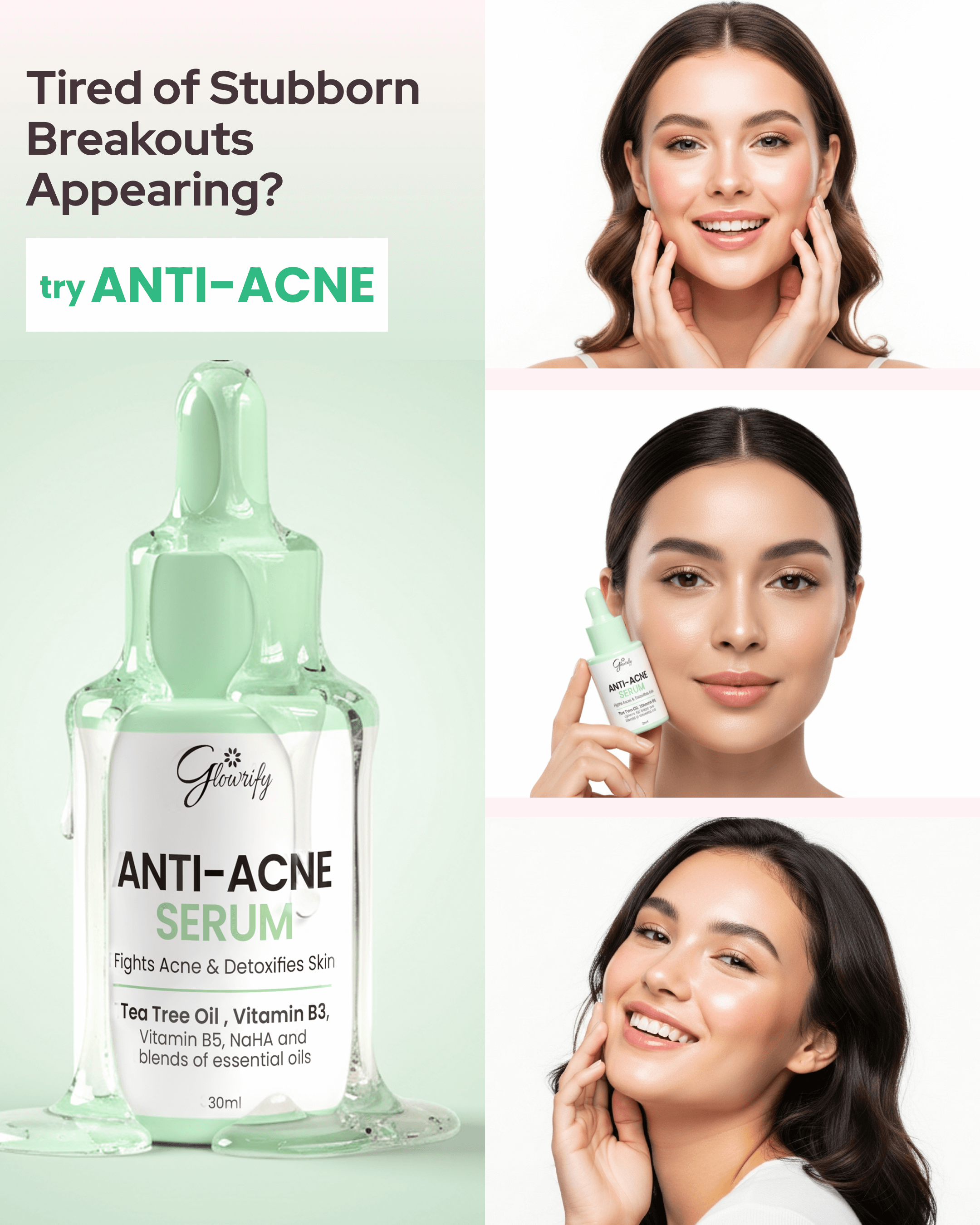 Glowrify Anti-Acne Serum is a targeted solution designed to combat acne, detoxify your skin, and prevent breakouts without drying out your complexion.