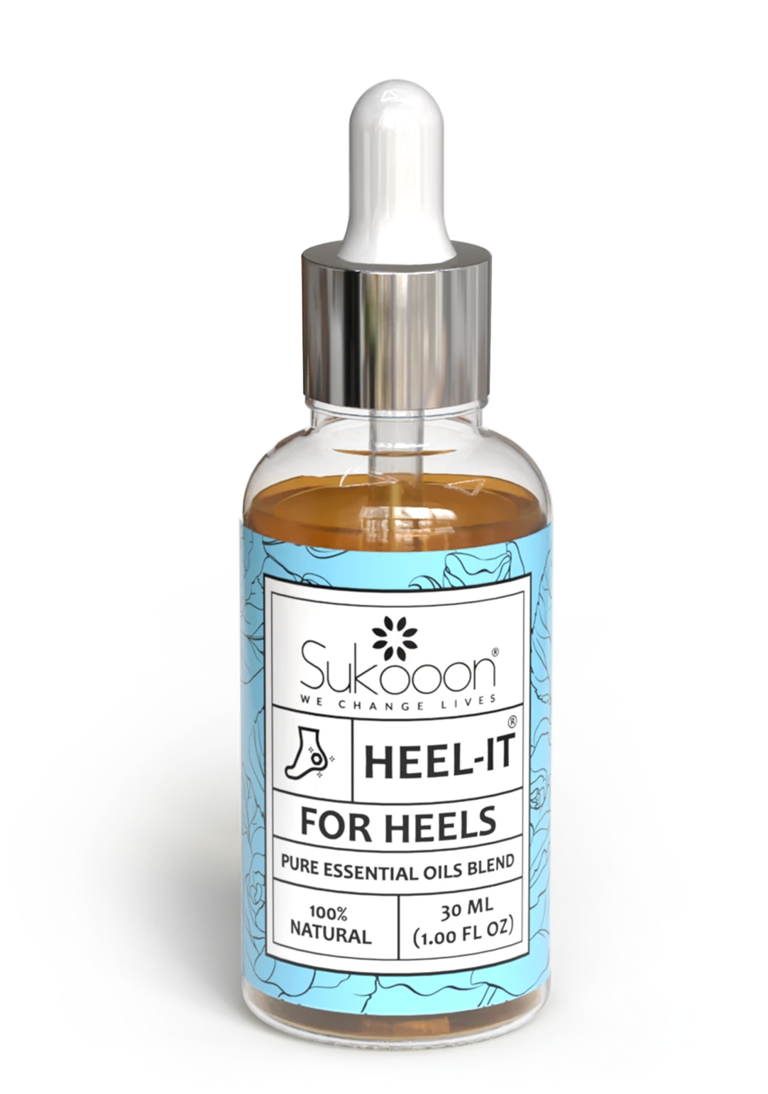 • Apply 5-7 drops of Heel-it essential oil blend by Sukooon on heel or foot.