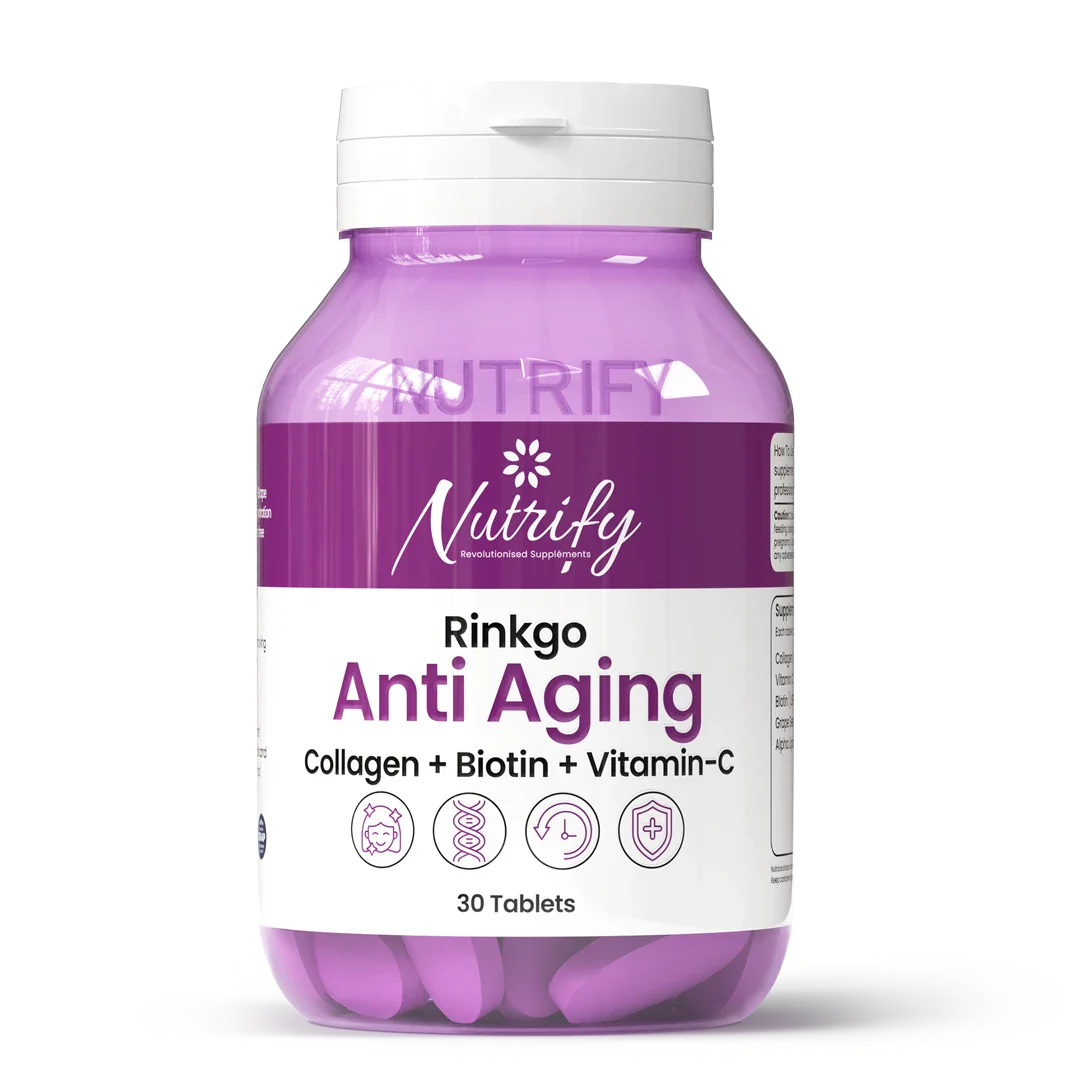 Nutrify’s Ringko is a premium blend of Vitamin C, Biotin, Collagen, Alpha Lipoic Acid, and Grape Seed Extract that enhances skin texture, reduces wrinkles, and protects against free radicals. It supports hair strength, reduces hair fall, and boosts immunity, promoting overall vitality.
